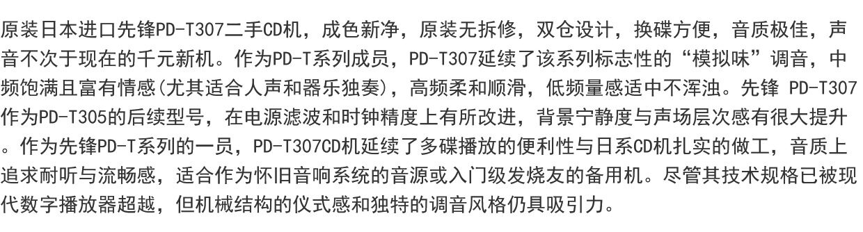 首页 > 影音设备 > 先锋原装日本进口先锋PD-T307二手CD机 双仓设计 读碟流畅